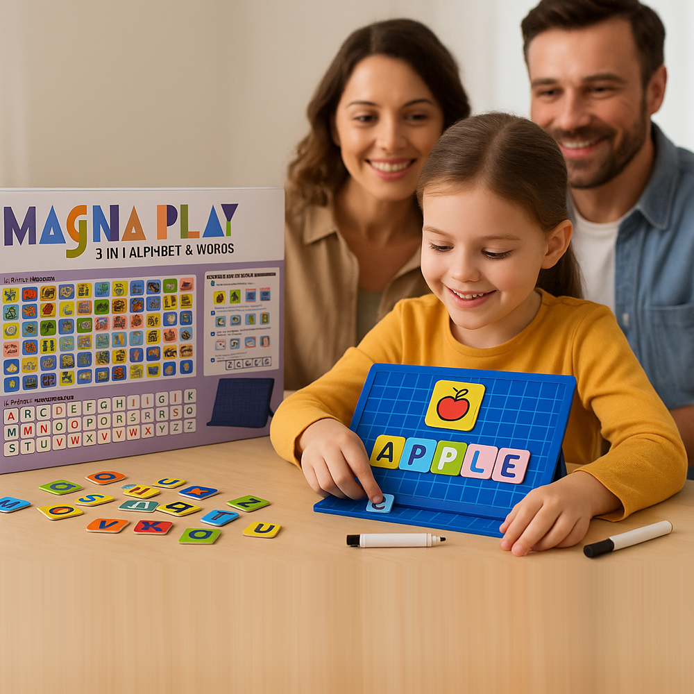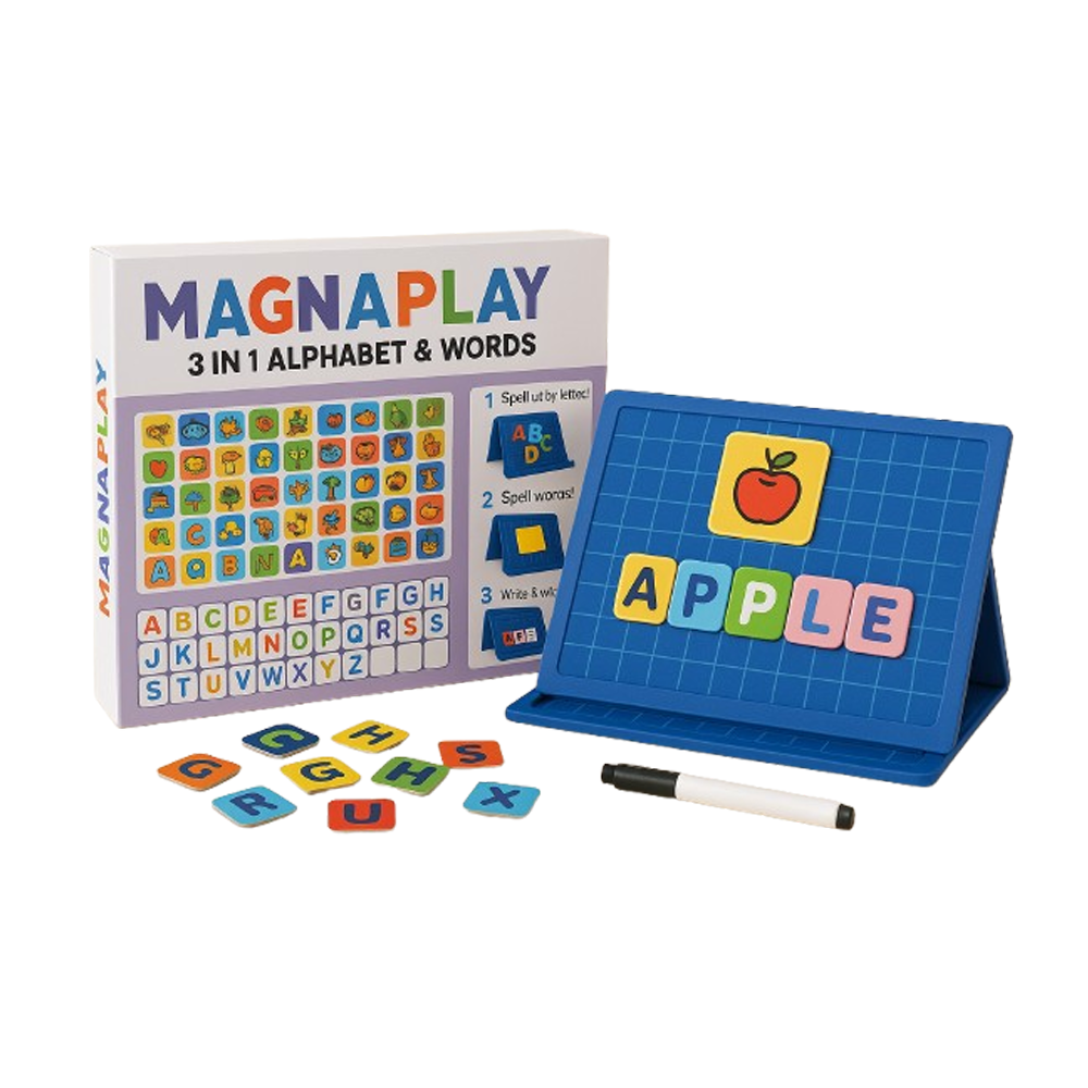 Magna Play 3-in-1 Alphabet & Words – 200 Magnetic Letters & Picture Magnets for Kids (Ages 6+) – Educational Learning Set