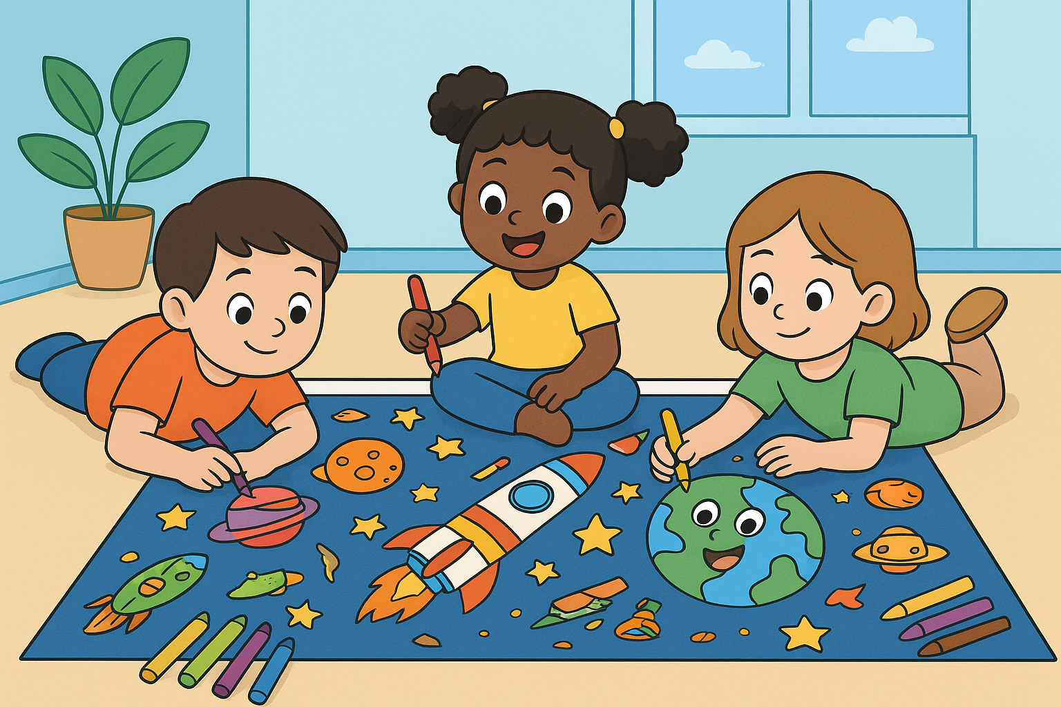 - Engaging Design: This colouring mat features an exciting space-themed design with rockets, planets, and astronauts to spark creativity and imagination in young minds.